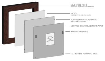 Let us handle it all, we'll match the frame to your photos and home decor. Hand made, solid wood mouldings hand assembled to high archival standards and ready to hang.